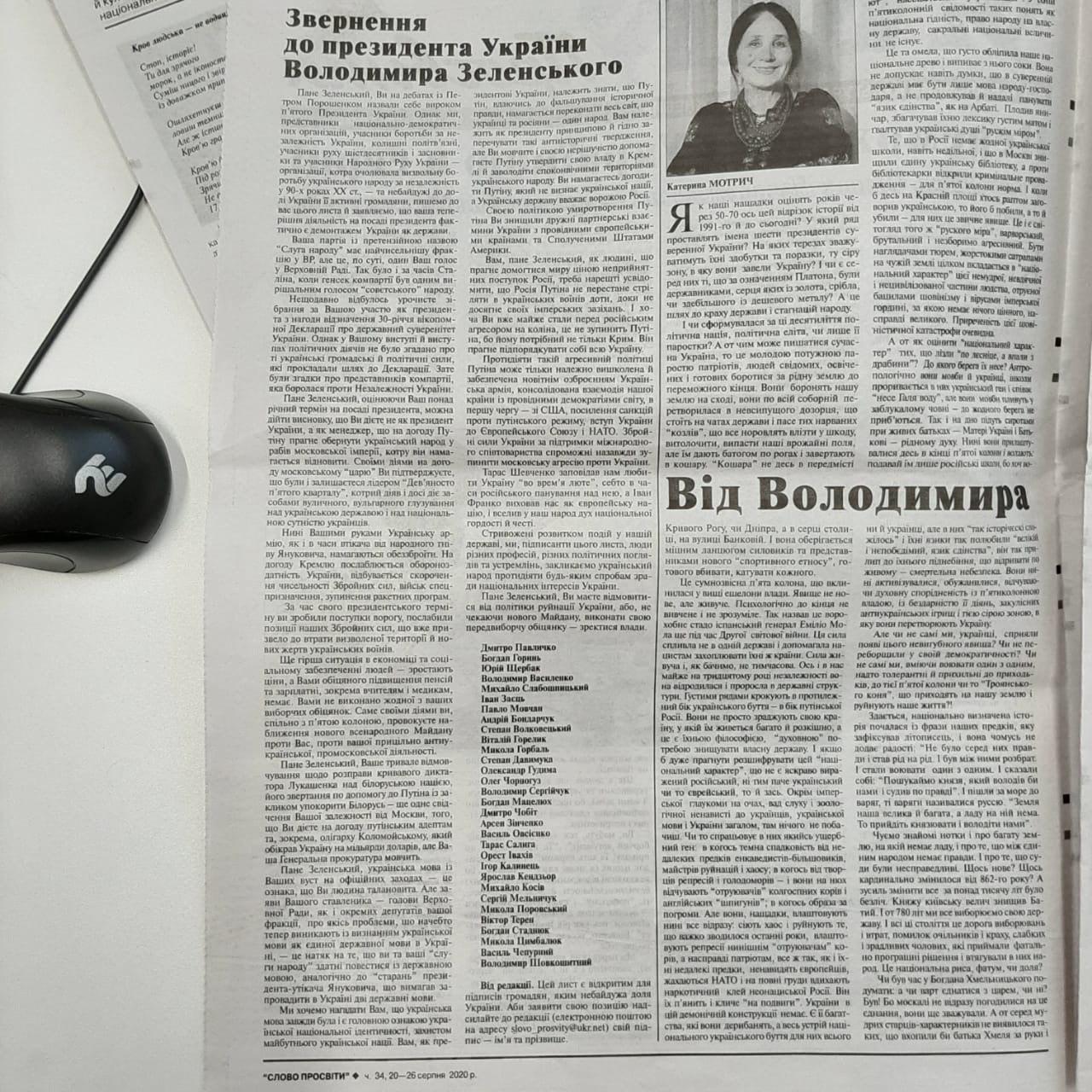 Вони вважають, що діяльність Зеленського на посаді президента є демонтажем Української держави. Звернення, опубліковане в газеті "Слово Просвіти", підписали: Дмитро Павличко, Богдан Горинь, Юрій Щербак, Володимир Василенко, Микола Горбаль, Василь Овсієнко, Ігор Калинець та інші.
