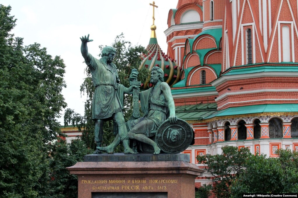 Вийшовши з московського Кремля на Червону площу, підійдемо до першого в російській столиці пам'ятника, встановленого тут у 1818 році. Це пам'ятник визволителям Кремля та Москви від польсько-литовсько-козацького війська 1612 року Кузьмі Мініну та Дмитру Пожарському. Автор твору – Іван Мартос (1754–1835), український та російський скульптор, із відомого козацького роду.