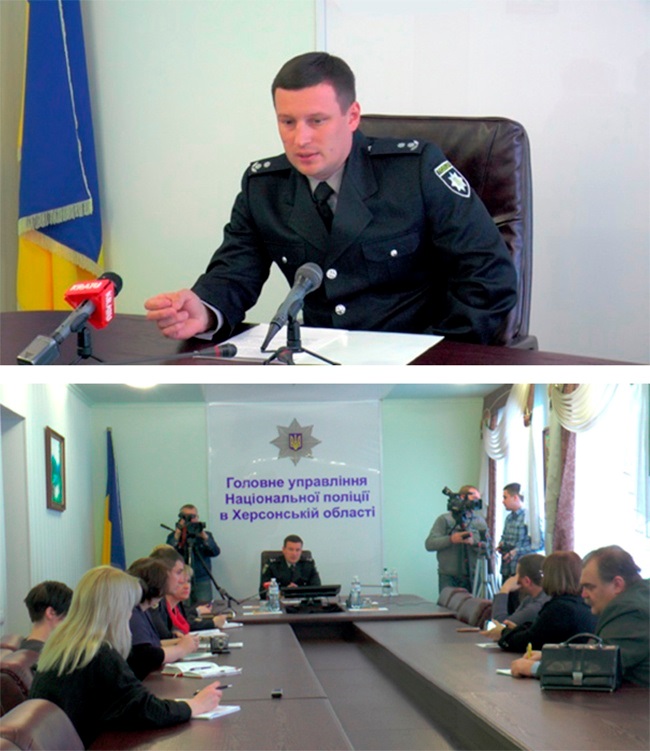 Очільник ГУ НП в Херсонській області Олександр Прокудін під час зустрічі з журналістами області